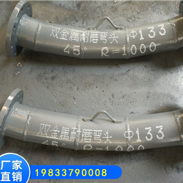 双金属耐磨管在生产工艺上直管采用离心铸造技术,该技术是将一种金属在液态导入无缝钢管,并与钢管熔合成型,实现了冶金结合的目的,其结合层剪切强度高于本体金属,完全实现了基层和耐磨层力学互补;弯头、三通、异径管等管件采用消失模真空吸铸复合工艺,其工艺先进,解决了弯管无法复合的难题,弯管和其它各种异形管道能做到整体复合,不改变物料在弯管中的流动轨迹,大大降低物料输送阻力。